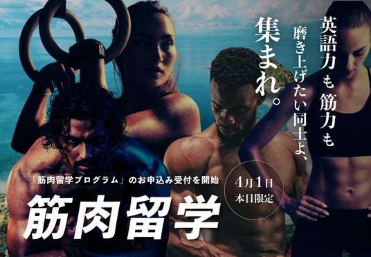 「Make The World Your Stage .」をブランドフィロソフィーに掲げ、海外留学エージェント「スマ留」を運営する株式会社リアブロード(本社:東京都渋谷区、代表取締役社長:神田慎 以下、リアブロード)は本日4月1日(火)限定で「筋肉留学プログラム」のお申込み受付を開始することをお知らせいたします。