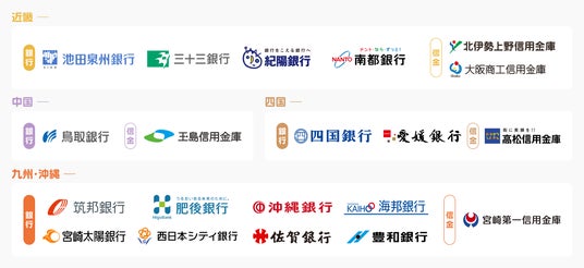 鳥取銀行、筑邦銀行、八十二銀行、肥後銀行、四国銀行、池田泉州銀行、秋田銀行、三十三銀行、愛媛銀行、北日本銀行、沖縄銀行