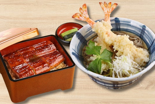 柔らかく肉厚で香ばしい鰻と甘だれが絡まり、口福感満載の「うな重」に、大海老天2本を盛り込んだそじ坊自慢の「天ぷらそば」を組み合わせた贅沢感あふれる定食です。