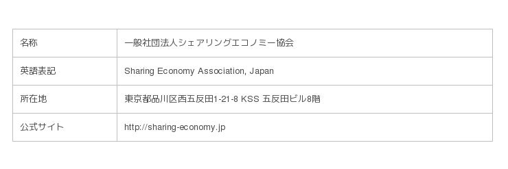 株式会社ガイアックスや株式会社スペースマーケットなど、シェアリングエコノミーを推進する6社は12月14日、日本国内におけるシェアリングエコノミーの普及と業界の発展を目的に一般社団法人シェアリングエコノミー協会(以下「シェアリングエコノミー協会」、http://sharing-economy.jp)の設立を発表いたしました。