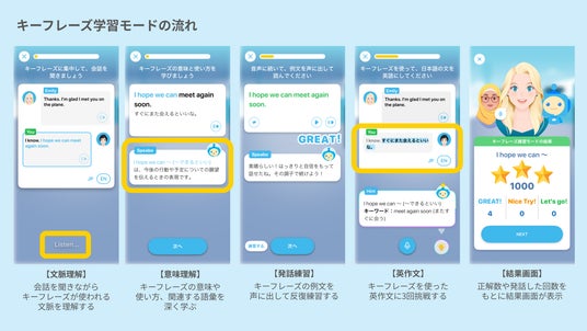 「キーフレーズ練習モード」は、レッスンを構成する一つの学習モードとして提供されます。