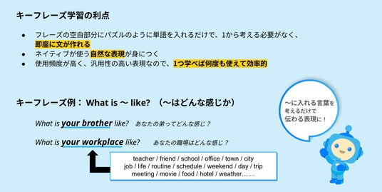 <キーフレーズ学習の利点=一部を入れ替えるだけで伝わる会話文ができ、効率的>