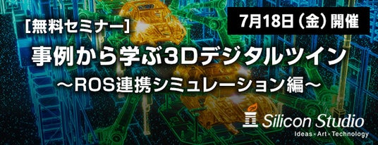 エンターテインメント業界を中心に、自動車、映像、建築など、さまざまな業界向けにデジタルコンテンツ関連ビジネスを展開するシリコンスタジオ株式会社(本社:東京都渋谷区、代表取締役社長:梶谷 眞一郎、東証グロース:証券コード3907、以下「当社」)は、「事例から学ぶ3Dデジタルツイン~ROS連携シミュレーション編~」と題し、デジタルツインによる可視化技術の活用に関する無料セミナーを2025年7月18日(金)に開催することをお知らせします。