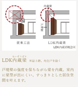 本物件は、高いセキュリティ性とプライバシー性を確保する「内廊下」設計を採用しています。プランは、3LDK ・70平方メートル 超を中心とした全15タイプです。高さ約2,400mmのハイサッシを採用しているため、室内からの視界を広げ、寛ぎのひとときに清爽なゆとりを描きます。また、LDKの内蔵梁により室内に梁型が出にくいすっきりとした居住空間としています。居住階には各住戸専用の宅配ロッカーを完備。邸宅としての美意識を宿した空間設計にしています。