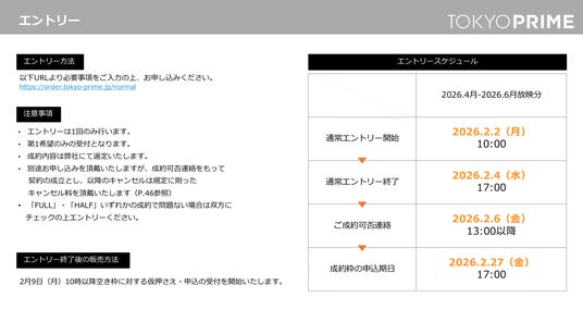 2026年2月2日(月)10:00より2026年4月-6月分の通常エントリーの受付を開始します。