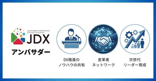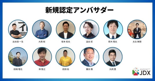 一般社団法人日本デジタルトランスフォーメーション推進協会(所在地:東京都千代田区、代表理事:森戸裕一、以下 JDX)は、日本のDX(デジタルトランスフォーメーション)推進を牽引するリーダーを発掘・支援する「JDXアンバサダー制度」において、2025年11月25日付で新たに11名を認定いたしました。