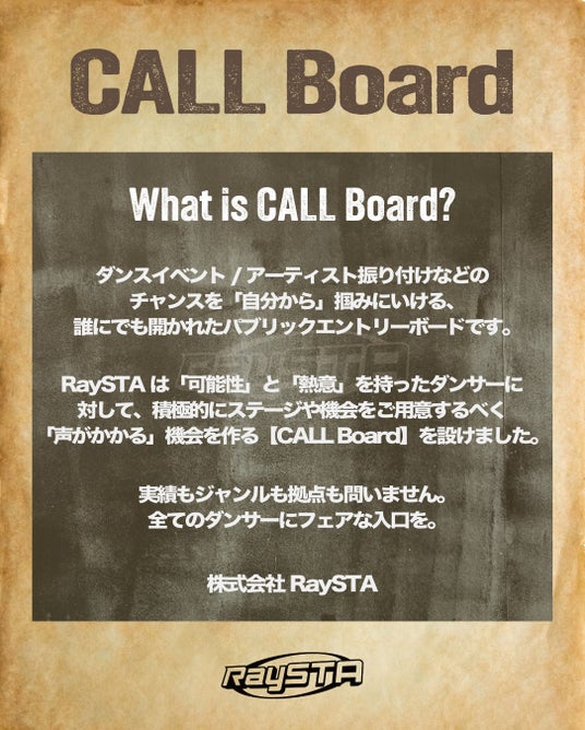 RaySTAがプロデュースする『CALL Board』は、ダンサー自身の「熱意」と「意思表示」を起点とした公開型キャスティング制度です。