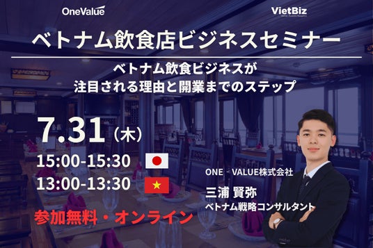 ベトナム現地の飲食ビジネスの市場・動向・食習慣・事例等を、ベトナム専門コンサルタントが徹底解説するセミナーを開催します。皆様のご参加を心よりお待ちしております。