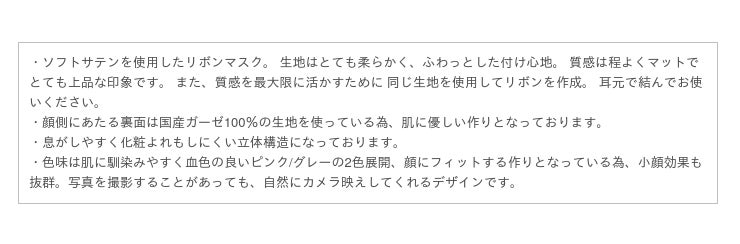 シンプルながらも、上品でどんなコーディネートにも合う万能マスク。