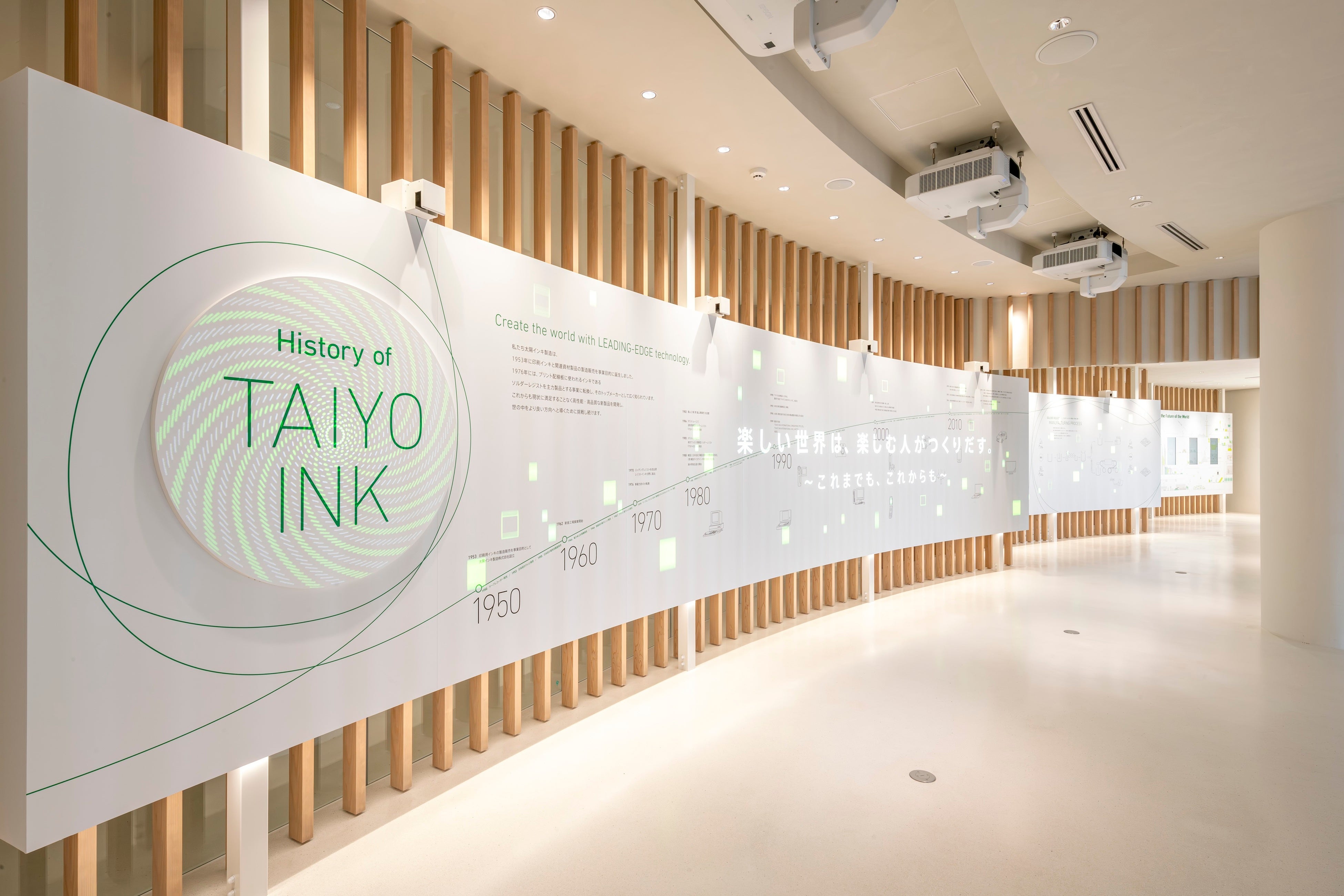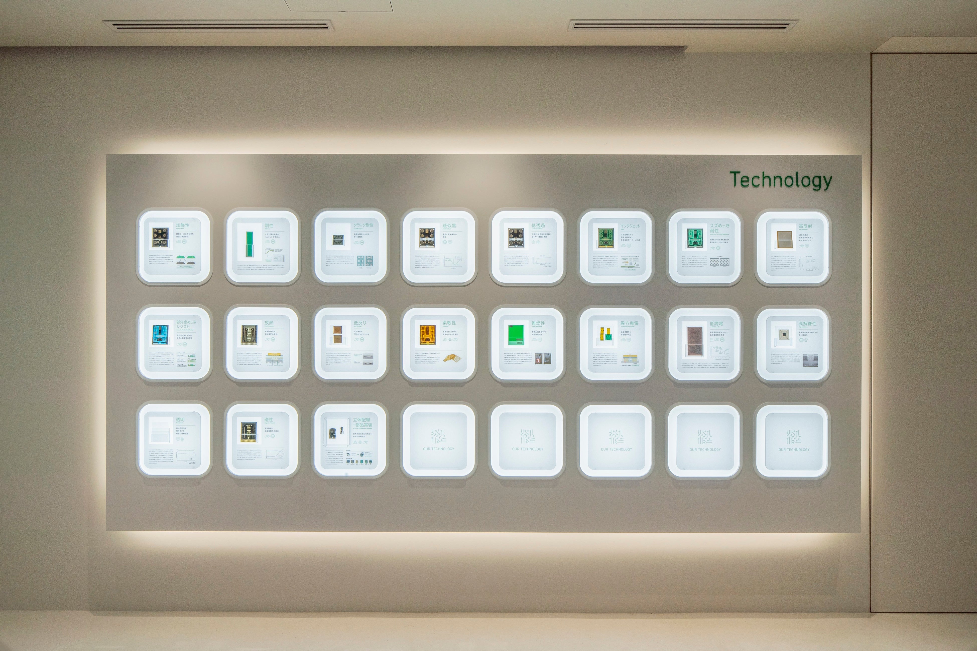 太陽ホールディングス(エレクトロニクス事業)製品への理解を促す体験型ショールーム。新しいビジネスが生まれるきっかけとなる「インスピレーションスペース」では、技術‧歴史‧未来を、デジタルとアナログの表現を組み合わせて体験的に伝えることで、顧客、開発者等の来訪者が“製品と技術のつながり”を体感できる空間を目指しました。