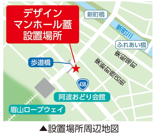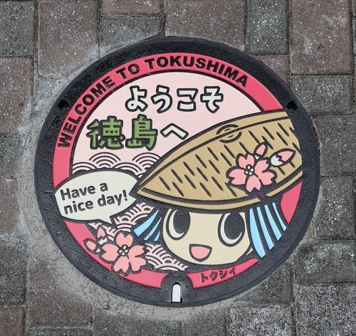 下水道事業への理解と関心を深めていただき、また中心市街地の活性化を目的とした、デザインマンホール蓋を設置しました。徳島市を訪れた際は、ぜひチェックしてみてください!