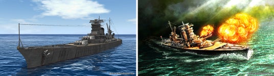 ▲重巡「超甲巡(副砲強化の雄山)」 左:スクリーンショット 右:イメージイラスト