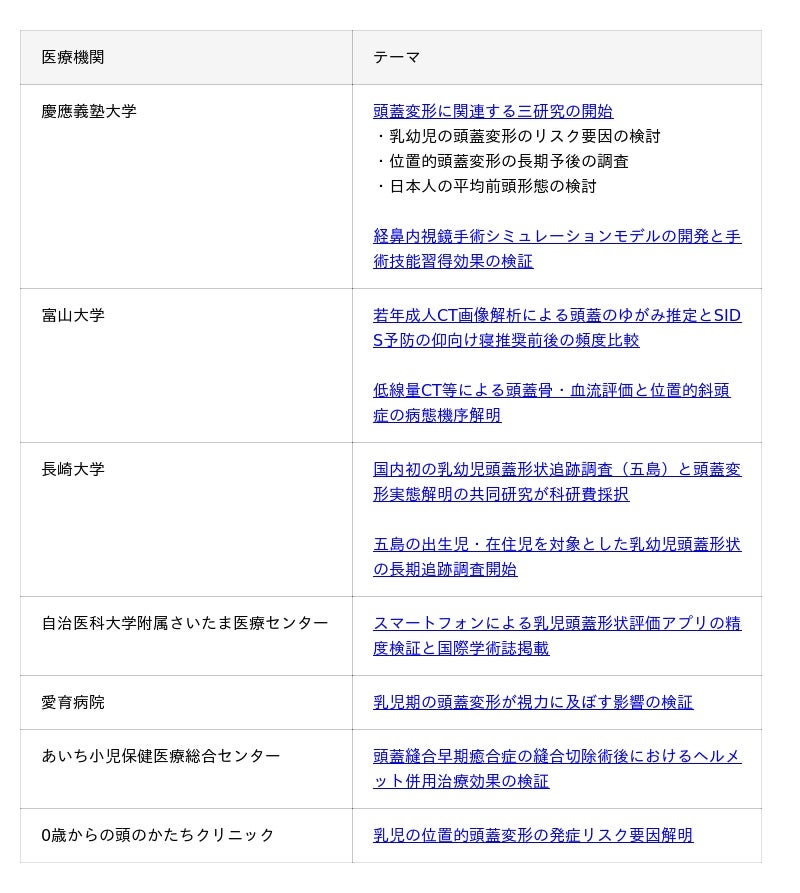 - 乳幼児頭蓋変形の共同研究を3年連続で公募
