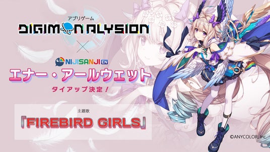 本PVの中ではNIJISANJI EN所属の人気VTuber、エナー・アールウェットさんが歌う「FIREBIRD GIRLS (JPN ver.)」が初披露されております。この楽曲では、詩人Chris Mosdellさんが書きおろした英語詞を元に、共にシンガーソングライターであるKaren YamaguchiさんとFoiさんに日本語版“JPN ver.”と中国語版“CHN ver.”の歌詞をそれぞれ提供していただきました。エナーさんが、3つの言葉が持つ特性を活かし歌唱した「FIREBIRD GIRLS」。「デジモンアリシオン」の世界観を彩る楽曲として、ぜひご注目ください。