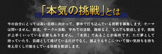 ・選考内容:挑戦内容を応募フォーム(https://questant.jp/q/OXWHI2P7)から書類を送付
