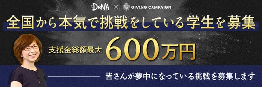 株式会社ディー・エヌ・エー(本社:東京都渋谷区、代表取締役社長兼CEO:岡村 信悟、以下DeNA)は、全国の24歳以下の方の挑戦を応援する「DeNA×Giving Campaign チャレンジャーズプログラム」を株式会社Alumnote(本社:東京都千代田区、代表取締役:中沢冬芽、以下Alumnote)と共催し、2025年5月30日(金)から一般募集を開始します。