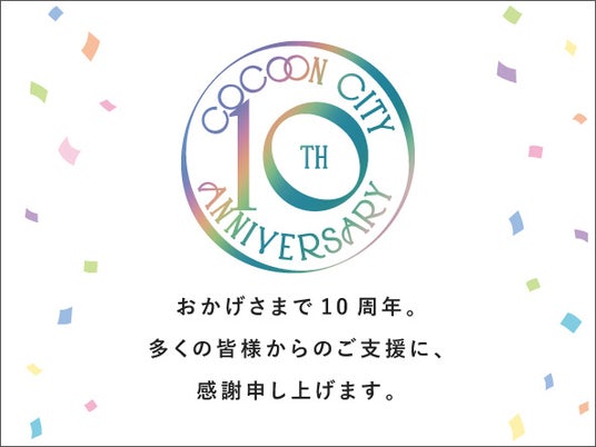 10周年に向けて周年期の認知促進と期待感の醸成を図るため、記念ロゴの制定と各種コンテンツを紹介する特設サイトを開設。10周年の幕開けとなる4月の誕生祭では、大型集客イベントをはじめ、周年を盛り上げる多彩なコンテンツを展開いたしました。また、お客さまにより快適にご利用いただけるよう、開業以来初となるコクーン2・3階フードコート「コクーンキッチン」のリニューアルも実施しました。