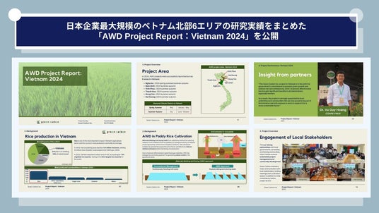 ネイチャーベースのカーボンクレジット創出販売事業を展開するGreen Carbon株式会社(代表取締役:大北潤、以下Green Carbon(読み;グリーンカーボン))は、2024年ベトナム北部6つのエリアで展開した、水田のAWD※1(間断灌漑)導入によるメタンガス削減及びカーボンクレジット創出プロジェクト(以下、本プロジェクト)をまとめた「AWD Project Report:Vietnam 2024(以下、本レポート)」をベトナムプロジェクトに投資する需要家、現地企業・研究機関に向け公開します。
