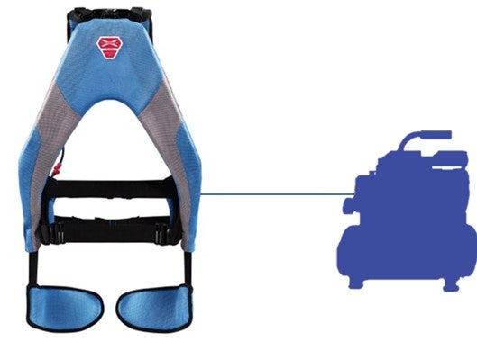 マッスルスーツCAREは、マッスルスーツ Everyを使用して、姿勢不良にアプローチする機能訓練モデルです。マッスルスーツEveryを着用して運動する「パッシブモード」と、マッスルスーツ Everyを改良し、コンプレッサーからの圧縮空気の出し入れによって姿勢ケアをする「アクティブモード」があります。