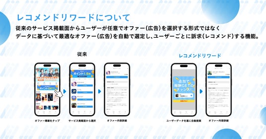2024年3月に『SKYFLAG』の新機能として正式リリースされたレコメンドリワードは、ユーザーへ最適なタイミングで広告(オファー)を表示するサービスです。