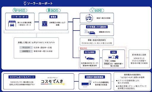 コスモ石油マーケティングが描く、再エネを「つくる・ためる・つかう」仕組み出典:コスモ石油マーケティング株式会社