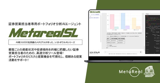 業種特化の専門AI 開発・運営を行う株式会社メタリアルグループで、国内市場No.1※1 のAI 翻訳サービスを開発・提供する株式会社ロゼッタ(代表取締役:五石 順一)は、顧客ポートフォリオ分析レポート作成AIエージェント「Metarealセールス」(以下、Metareal SL)を7月1日(火)に新開発・提供開始したことを発表します。