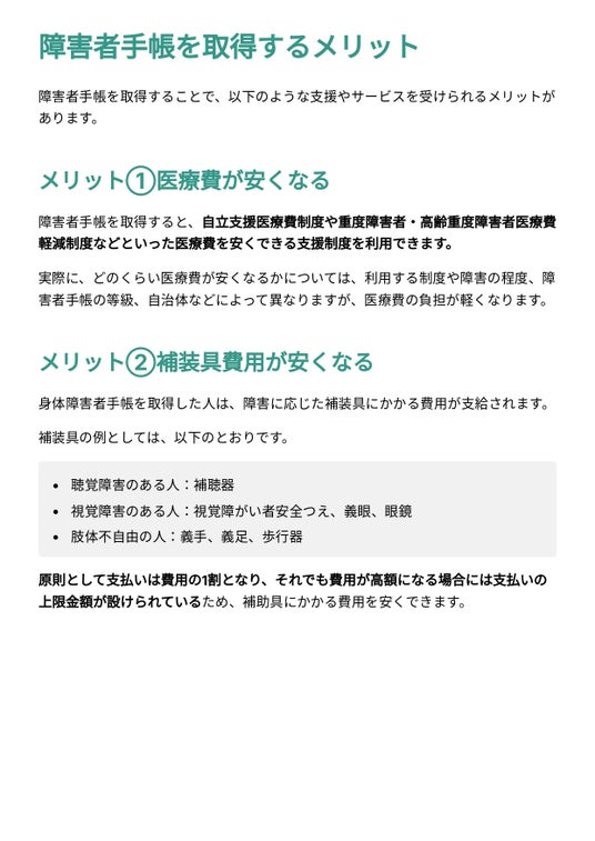 障害者手帳の基本からメリット、注意点、申請方法までを、わかりやすく丁寧に解説しています。