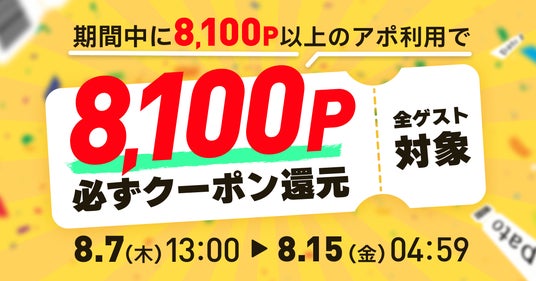 期間中のご利用で、必ず8,100Pクーポンを還元いたします