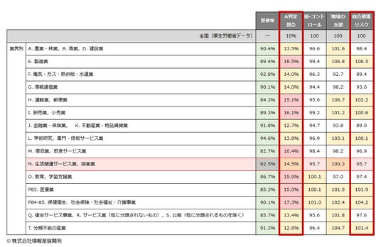 ストレスチェック業界平均値レポート2025:受検率・高ストレス者割合・総合健康リスク業界別一覧「生活関連サービス業,娯楽業」
