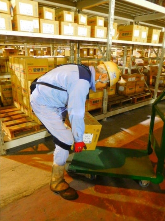 愛知管材工業は、JFE商事鋼管管材株式会社から、鋼管・管材の荷役作業を請け負っております。特に管材は1箱平均20kgと重く、入庫・出庫(出荷)での「棚への出し入れ作業」において、作業者は腰痛や指先のしびれが発生していました。また、高齢の作業者が比較的多い中、今後は女性の雇用も視野に入れていたため、将来の人材多様化も見据えて対策の検討を始めました。