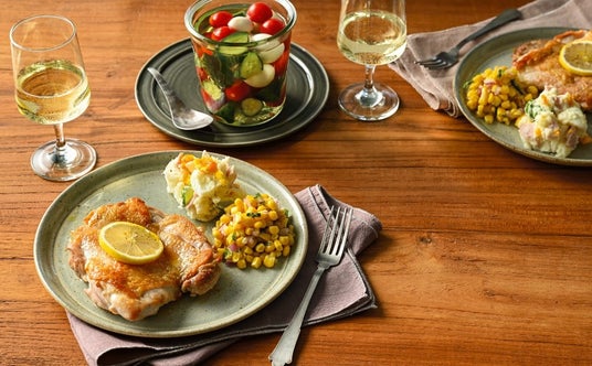 作りおきの副菜があれば、当日はメインの肉を焼くだけで大充実の食卓に。