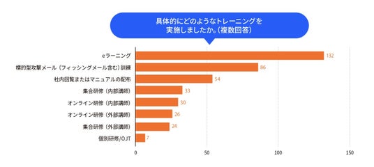 ・半数以上の企業がセキュリティトレーニングを実施しているが、内容としては座学型のeラーニングが多数。