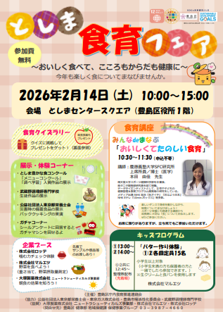 株式会社マルエツ(本社:東京都豊島区、代表取締役社長:本間 正治、以下:マルエツ)は、地域における食育活動に継続的に取り組んでおります。このたび、2月14日(土)に、としまセンタースクエア(豊島区役所1階)にて開催される「としま食育フェア」に出展いたします。