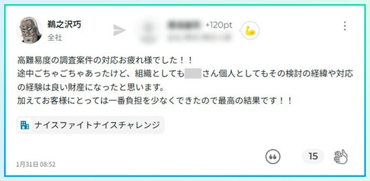 一対一のチャットで完結しがちな感謝やナレッジの共有を、全社員が見られるタイムライン上で「オープン化」し、かつ「送る側も受け取る側も負担がない」仕組みを導入したことが、モチベーション向上はもちろん、社員の良い仕事が組織全体の資産になるようになりました。