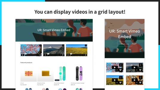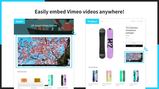 「UR: Smart Vimeo Embed」を使うと、ストア上のあらゆるページに Vimeo 動画を埋め込むことができます。TOP ページでブランドイメージの動画を表示したり、商品ページでマニュアル動画を表示したりするのに役立ちます。