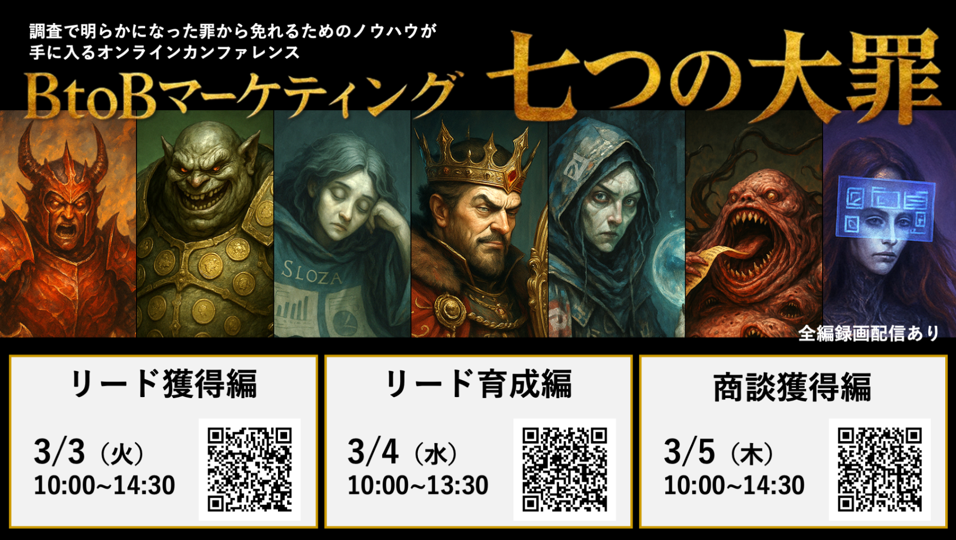 調査データと実務視点の両面から解説するオンラインカンファレンス「BtoBマーケティング 七つの大罪」 を開催いたします。