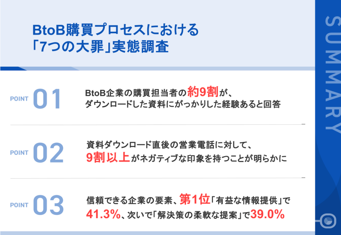 本調査から、BtoB営業・マーケティングにおいて「効率化」や「即アプローチ」を優先した施策が、必ずしも買い手の信頼につながっていないことが明らかになりました。