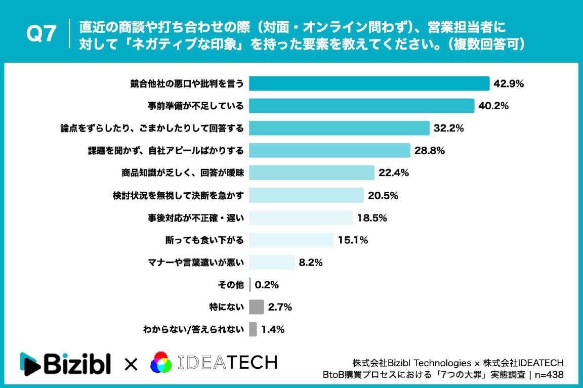 ■ 商談時のネガティブ印象、第1位は「競合他社の悪口」(42.9%)