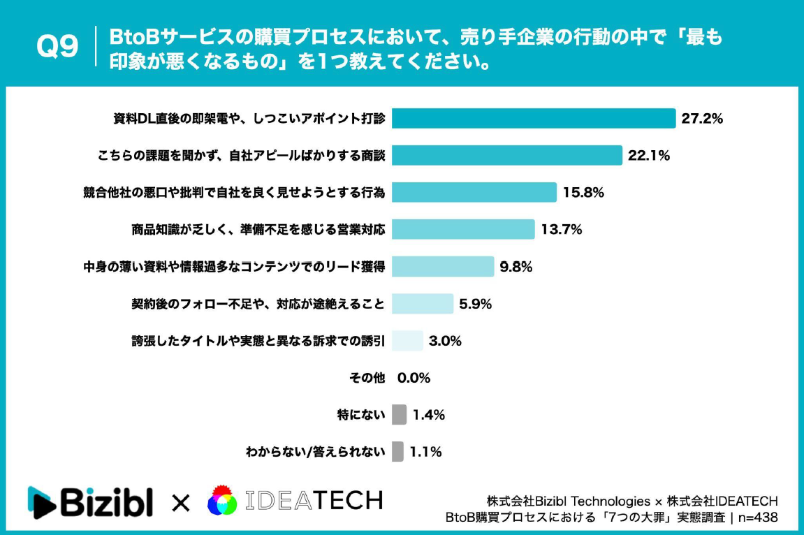 BtoBサービス購買時に「最も印象が悪くなる売り手の行動」としては、