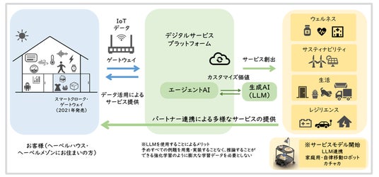 現在当社はPreferred Roboticsと共に LLMと連携した家庭用・自律移動ロボットモデルの共同開発を進めていますが、そうした取り組みも含めて今回、生成AI(LLM)と連携したデジタルサービスプラットフォームの構築を開始することといたしました。このプラットフォームは、IoT機器で収集された生活記録などをクラウド上に集約し、AIで解析することで、生活の利便性、健康、安全性、持続可能性を向上させる多様なサービスを提供することを目的としています。今後は、さらに生成AIの開発を進め、住宅全体を通した展開をしていく予定です。