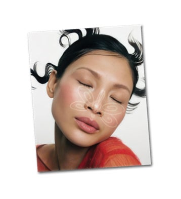 STEP2:お顔全体に少量ずつ均一に伸ばしてください。特に皮脂やテカリが気になるTゾーンはもちろん、毛穴目立ちが気になりやすい頬、鼻の下、小鼻の周りを含む「バタフライゾーン」には重ねてお使いいただくのがおすすめです。