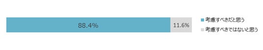 Q. 普段の食品・飲料や外食(宅配サービスを含む)を選ぶにあたって、次の社会課題に取り組んでいるかどうかを考慮すべきだと思いますか、思いませんか。選ぶ対象のものの味・値段といった他の条件は同一という前提で、お答えください。(単回答)