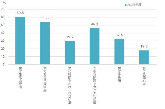 なお、「社会課題に配慮した食」への消費性向を把握するため、本年度も、食生活に関する価値観から生活者を6つのセグメントに分類し、それぞれ分析を行っています。