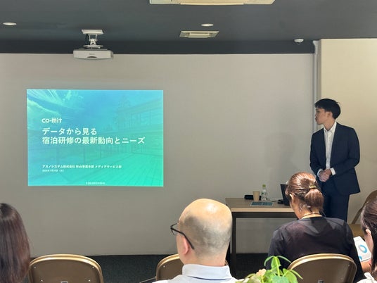 国内最大級の貸会議室検索サイト「会議室.COM」を運営するアスノシステム株式会社(東京都港区/代表取締役社長 齋藤 武育/以下、「アスノシステム」)は、自社が運営する研修・合宿施設検索サイト「CO-MIT(コミット)」主催セミナー「データから見る宿泊研修の最新動向とニーズ」を、2025年7月24日(木)にA-Point TAKESHIBA(東京都港区)にて開催しました。