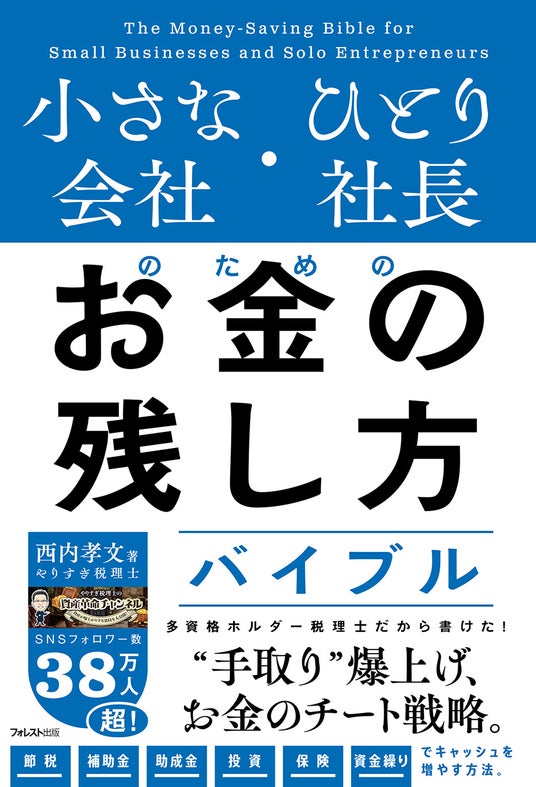 フォレスト出版株式会社(所在地:東京都新宿区、代表取締役:太田 宏)は、『 小さな会社・ひとり社長のためのお金の残し方バイブル』(西内 孝文・著)を2026年2月20日(金)より順次発売します。本書は、「節税したのになぜかお金が残らない」という構造的問題を解き明かし、節税・社会保険・補助金・投資を単発のテクニックではなく一本の"お金の流れ"として設計し直すことで、最終的に会社と社長の手元に最大限のキャッシュを残す実践戦略を提示する一冊です。