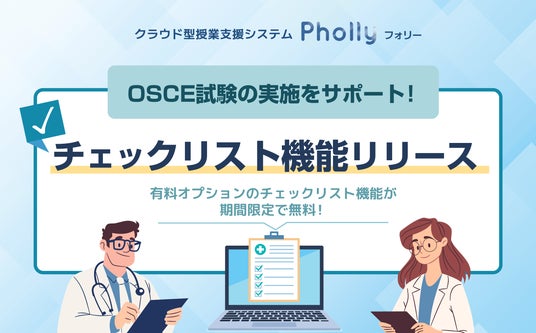 Mogic株式会社(本社:東京都練馬区、代表取締役:山根陽一、以下Mogic)は、コミュニケーション型授業支援システム「Pholly(フォリー)」において、OSCEなど臨床試験の実施・評価・振り返りに特化した新機能「チェックリスト機能」をリリースいたしました。