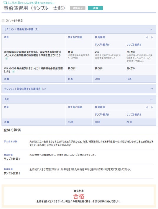教員は、試験準備と評価をシステム上で実施でき、業務負担の削減につながります。学生側も、試験後すぐに自己評価を行えるほか、複数教員からの評価をシステム上で比較でき、学習効果の最大化やモチベーションの向上を見込めます。