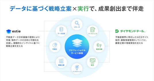 また、本事業の譲受を機に、estieはWEB制作やマーケティングの知見を融合させた”プロフェッショナルサービス事業"を立ち上げます。これまで培ってきたデータ分析・可視化のノウハウと、本事業譲受で獲得する制作機能を掛け合わせることで、不動産事業者のマーケティング・販促活動をより実効的に支援し、業界全体のデータ活用価値を高め、成果創出にさらにコミットしてまいります。