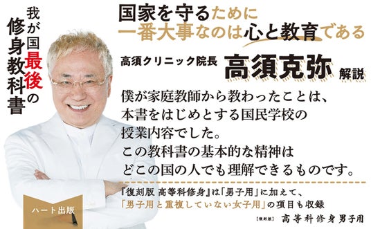 だが、そんな教科書を強く推薦する人物がいる。本書の解説者、高須克弥・高須クリニック院長である。高須院長はツイッターでもフォロワーに対して「この一冊には僕の精神の全てが凝縮されています。教育は子孫に残す最大の財産です。今こそ子供たちに伝えたい一冊。お読みください」とツイートしている。