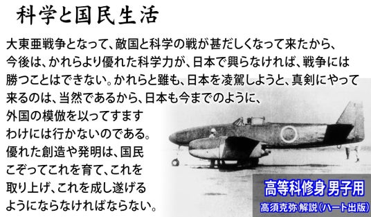 ハート出版から発行された『復刻版 高等科修身 男子用』も、戦後の価値観からすれば受け入れがたい教科書である。この国民学校高等科(今の中1中2)の修身教科書は、各地で日本軍が玉砕し、本土空襲が始まった昭和19年20年のもので、しかも兵役義務のある男子用である。本書は「戦争に勝つ」ことが強く前面に押し出されている点で、これまで復刊されてきた修身教科書よりも「軍国主義」的である。